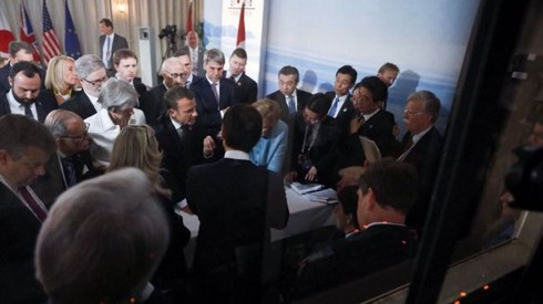 Bức ảnh các nguyên thủ quốc gia nhóm nước G7 vây quanh Tổng thống Trump. |