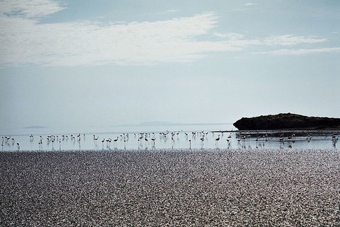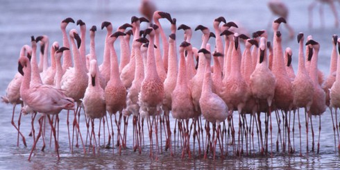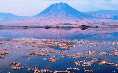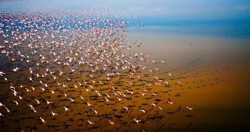 Vào mùa sinh sản, chim hồng hạc đổ về hồ Natron với số lượng lớn tạo nên cảnh quan tuyệt đẹp. |
