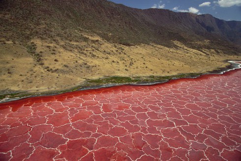 Cụ thể, hồ Natron có độ kiềm cao với độ pH cao tới 10,5. Theo các chuyên gia, lý do khiến nước trong hồ có độ kiềm cao như vậy là do địa chất núi lửa bao quanh hồ Natron. |