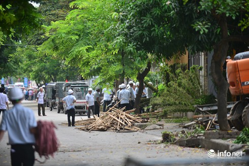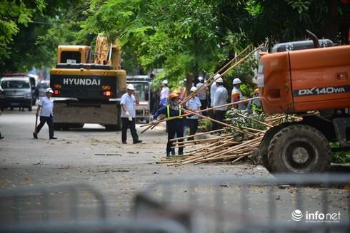 Từ sáng ngày 28/6, lực lượng chức năng đã có mặt tại các công trình vi phạm trên đường Phan Kế Bính, bắt đầu tiến hành giải tỏa mặt bằng. |