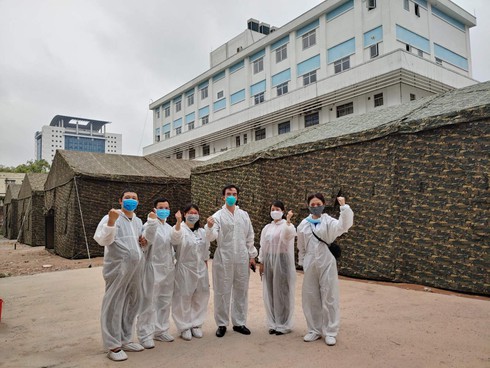 Đội ngũ y bác sĩ bệnh viện thể hiện sự quyết tâm chiến thắng dịch bệnh. |