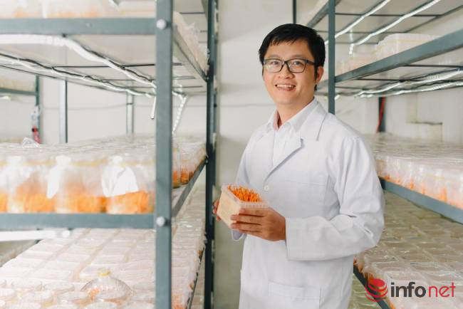 Chia sẻ với PV Infonet, Tiến sĩ Nguyễn Thành Trung, Giám đốc công ty Vinseed cho biết, với mong muốn giúp nhiều người có thể tiếp cận được loại dược liệu quý này, anh cùng đồng nghiệp đã sáng chế ra mô hình tủ nuôi đông trùng hạ thảo. Chiếc tủ nuôi này như một phòng nuôi quy mô nhỏ, đáp ứng đầy đủ các điều kiện về nhiệt độ, độ ẩm, ánh sáng, độ thoáng khí, được anh chế ra từ một chiếc tủ mát bình thường.