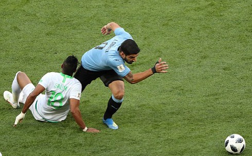 Có lẽ, các cầu thủ áo trắng cũng nhận biết được khả năng uy hiếp của Suarez vì thế tiền đạo mang áo số 9 của Uruguay đang là cầu thủ được phía Saudi Arabia chăm sóc đặc biệt nhất kể từ đầu trận tới bây giờ. Tuy nhiên, cách tấn công cho thấy sự bế tắc của các cầu thủ Saudi Arabia.
