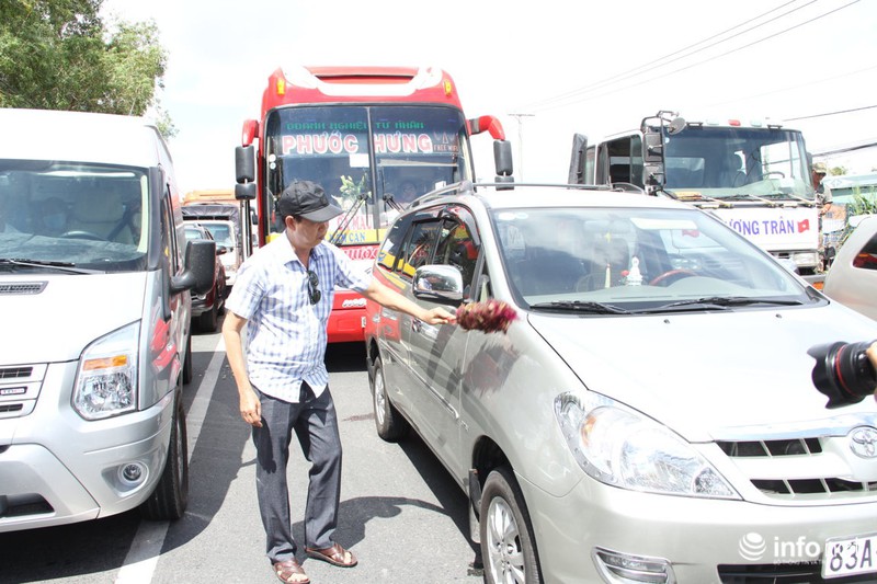 Cảnh tượng hỗn loạn sau khi xuất hiện một thanh niên mặc áo đỏ ghi lại từng biển số xe. Thấy vậy, tài xế hỏi ghi làm gì thì người thanh niên này tự xưng là nhà báo. Một tài xế hỏi công tác ở báo nào, xin xem giấy giới thiệu thì bị người thanh niên này nhào tới đánh vào mặt.