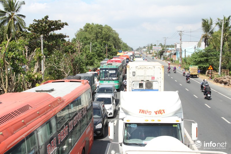 Ở chiều ngược lại từ Cà Mau về Bạc Liêu cũng ùn ứ |