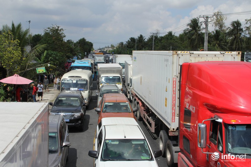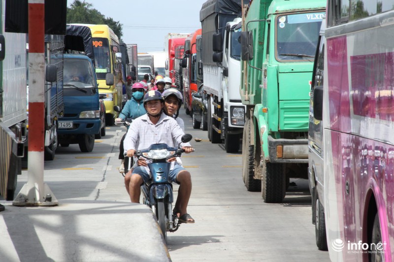 Đến 12h, giao thông hoàn toàn tê liệt, kẹt cứng cả hai chiều, kéo dài 2km trước trạm thu phí BOT Sóc Trăng |