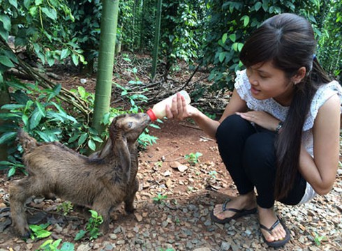 | Chú dê con được cô chủ Lê Phước Lộc cho uống sữa. |