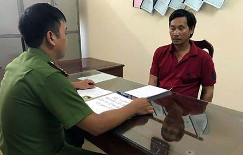 Đối tượng Nguyễn Văn Bao tại cơ quan công an. |