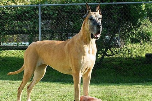 Great Dane là một giống chó nhà của Đức nổi tiếng vì kích thước khổng lồ. |