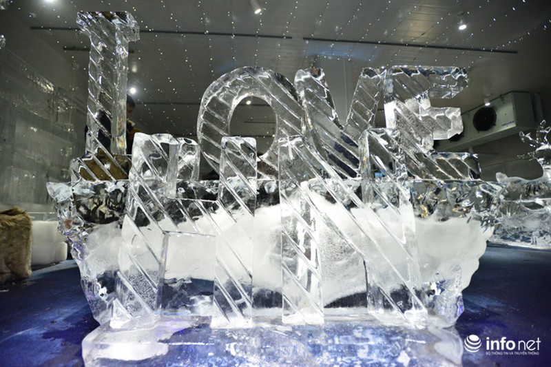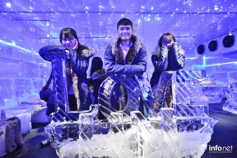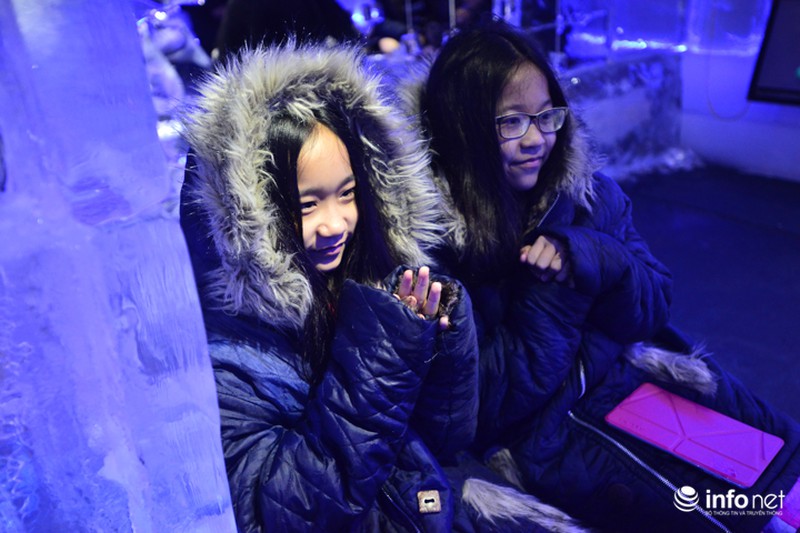 Nhiều em nhỏ thích thú với không gian lạnh tới -10 độ C, toàn bộ đều đóng băng đá giữa lòng Hà Nội. |