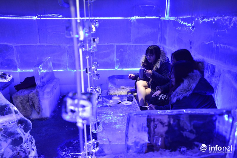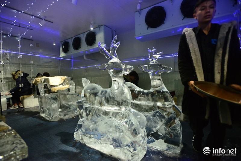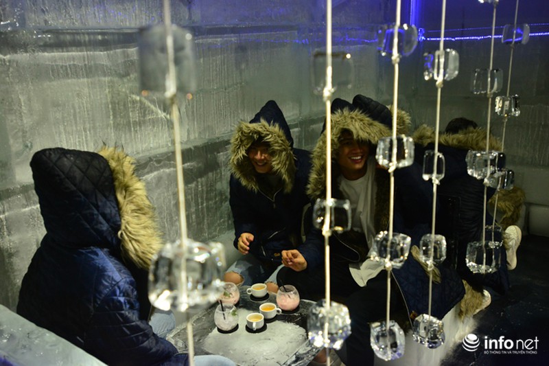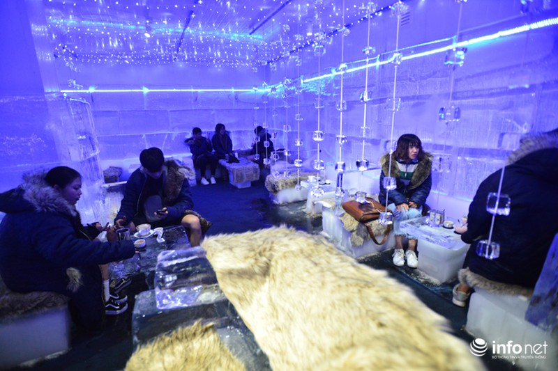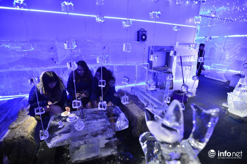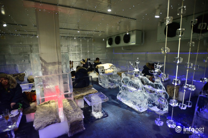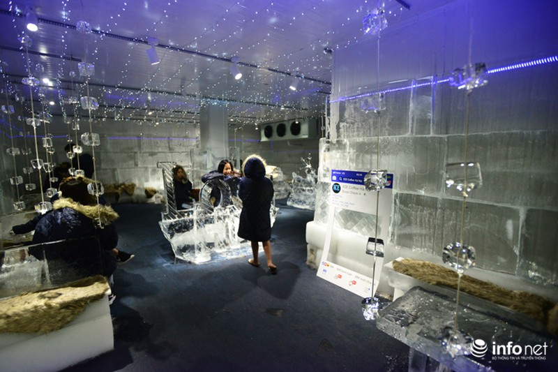 Theo quản lý của quán cafe Ice Coffe, không gian quán chia làm 3 khu vực. Khu vực sảnh để khách mặc thêm áo khoác lông ấm, phòng đệm có nhiệt độ khoảng 5 độ C để tránh sốc nhiệt và cuối cùng là phòng -10 độ C |