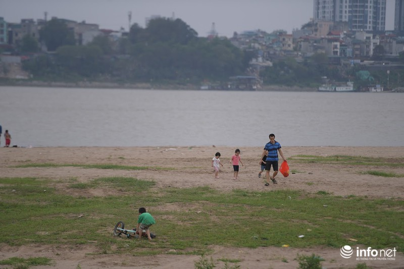 Nhiều trẻ nhỏ cũng được bố mẹ đưa ra gần bờ sông chơi. |