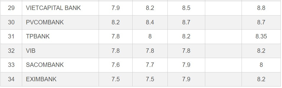 Tại PVCombank, kỳ hạn 18 tháng được ngân hàng giảm mạnh từ 9% xuống 8,7%/năm, đây cũng là lãi suất cao nhất hiện tại đối với ngân hàng này.