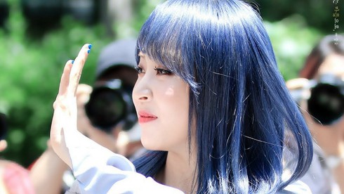 Một màu tóc không thể nào chói sáng hơn nữa! Mái đầu xanh óng ánh như màu xanh đại dương sẽ khiến người đối diện bị thu hút như đang thôi miên vậy. Mái tóc mang màu xanh Calypso này từng không ít lần “gây sốt” trong cộng đồng người hâm mộ Kpop.