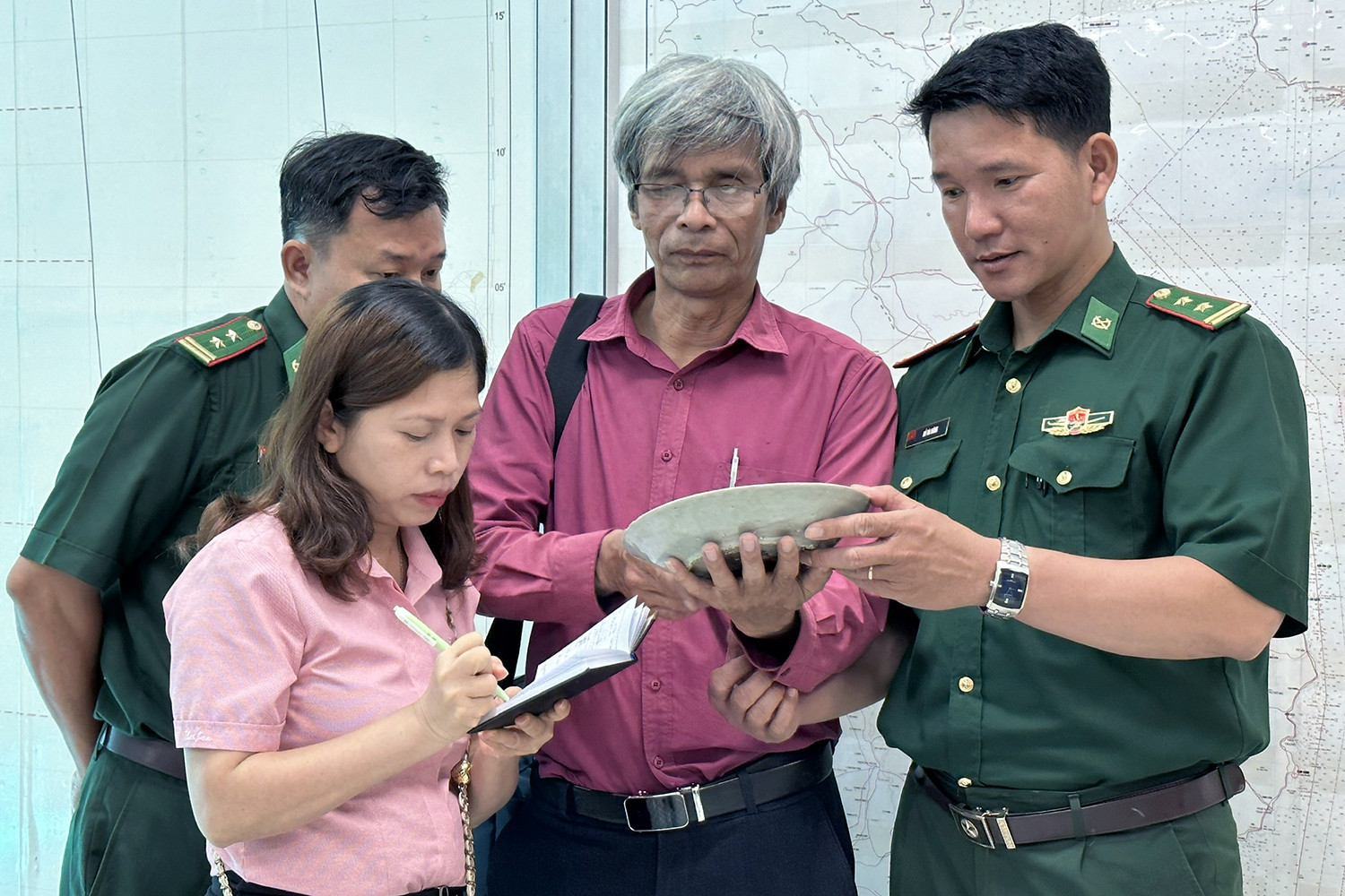 Ngày 23/5, Bộ Chỉ huy Bộ đội Biên phòng Quảng Ngãi phối hợp Bảo tàng tổng hợp tỉnh kiểm tra các đồ vật là gốm sứ đã được phát hiện trên tàu cá của ngư dân khai thác trái phép tại khu vực biển ven bờ xã Bình Hải, huyện Bình Sơn.