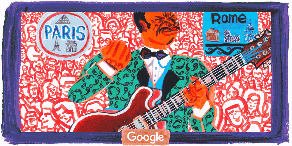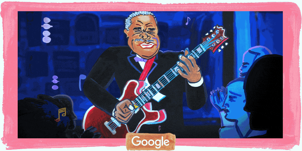 Những họa sĩ đã sáng tạo ra Google Doodle để tôn vinh nhân 94 năm ngày sinh của B.B.King - nghệ sĩ huyền thoại được mệnh danh là "Ông hoàng của nhạc blues", người đã góp phần đưa nhạc blues từ âm nhạc bình dân, từ những cánh đồng trồng bông và những góc phố tới các sân khấu và nhà hát lớn khắp thế giới.