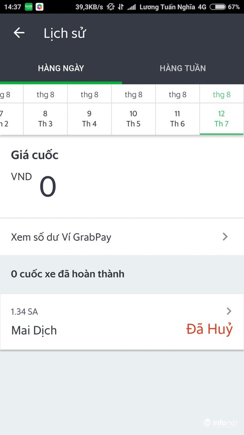 Để chứng minh, các tài xế đăng tải hình ảnh ví grab với thu nhập trống rỗng trong ngày. |