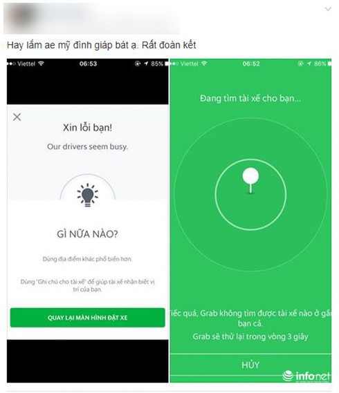 Nhiều ý kiến trái chiều trên các diễn đàn dành cho anh em Grab Bike. |