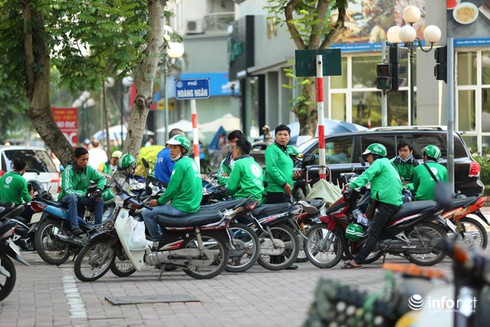 Bên cạnh những người định công, nhiều tài xế Grab Bike vẫn đi làm bình thường vì áp lực và cảm thấy chấp nhận được với mức chiết khấu mới. |