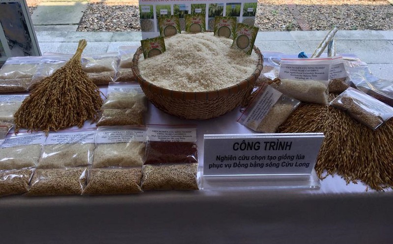 Trưng bày công trình "Nghiên cứu chọn tạo giống lúa phục vụ Đồng bằng sông Cửu Long" của GS.TS Nguyễn Thị Lang. |