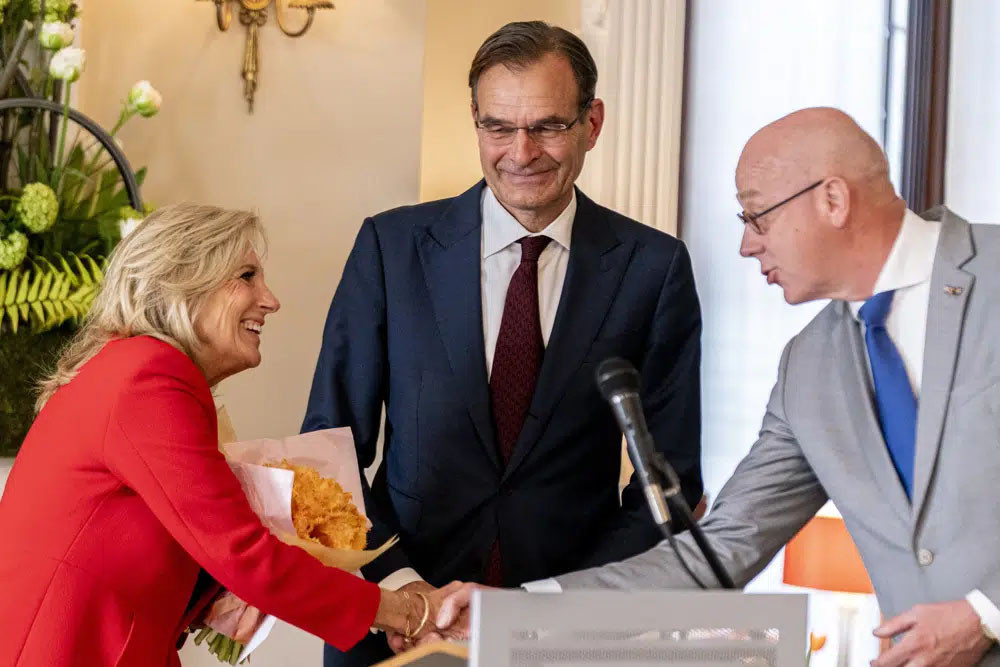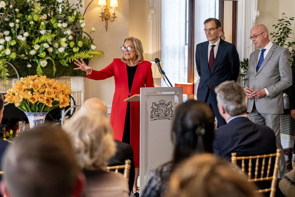 Bà Biden đã nâng cốc chúc mừng và bày tỏ sự vinh dự được tham gia vào truyền thống đặt tên hoa tulip của Hà Lan.