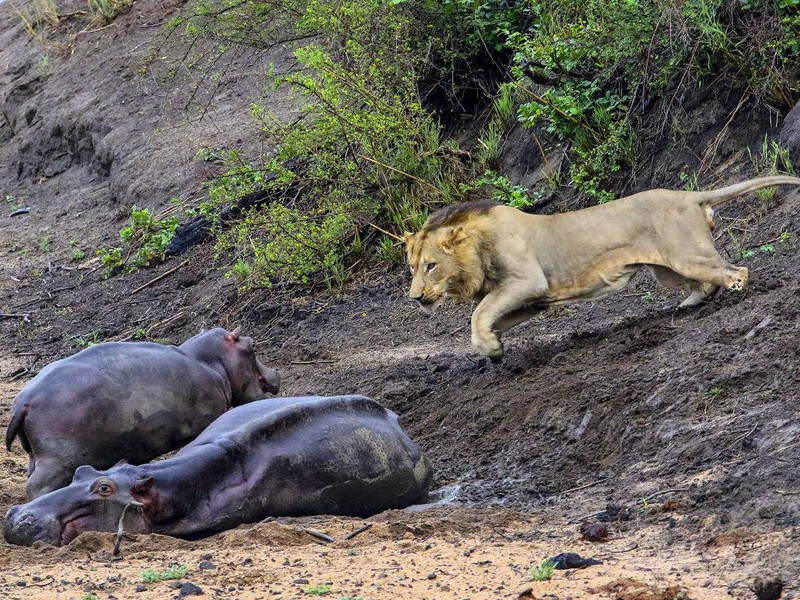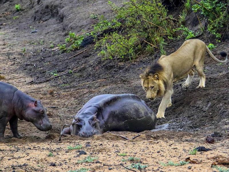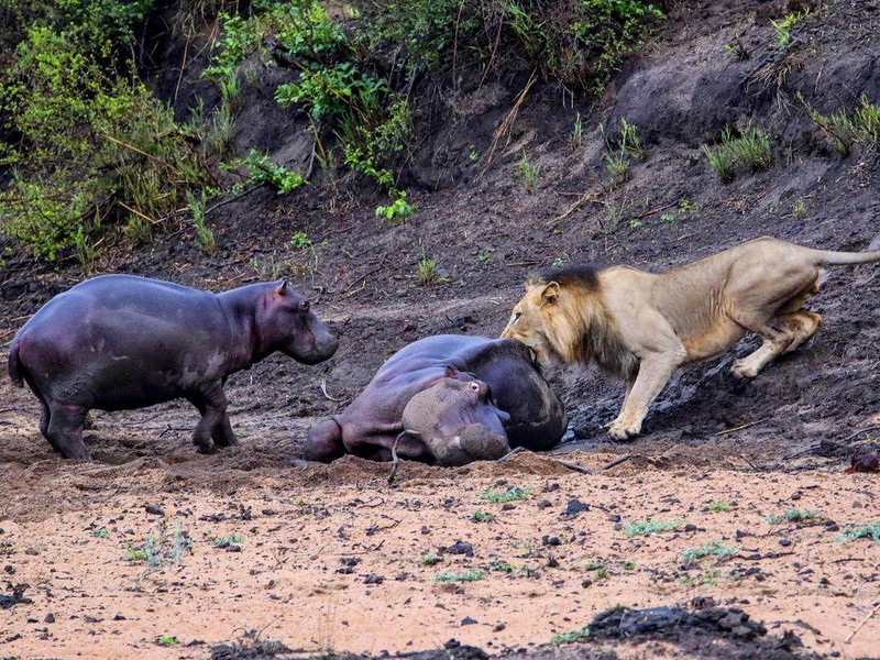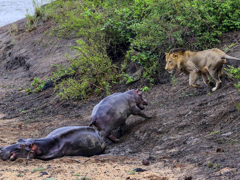 Theo tờ independent, khoảnh khắc hà mã con chống chọi sư tử vô tình lọt vào ống kính của nhiếp ảnh gia Hanno Erasmus ở vườn quốc gia Kruger, Nam Phi.