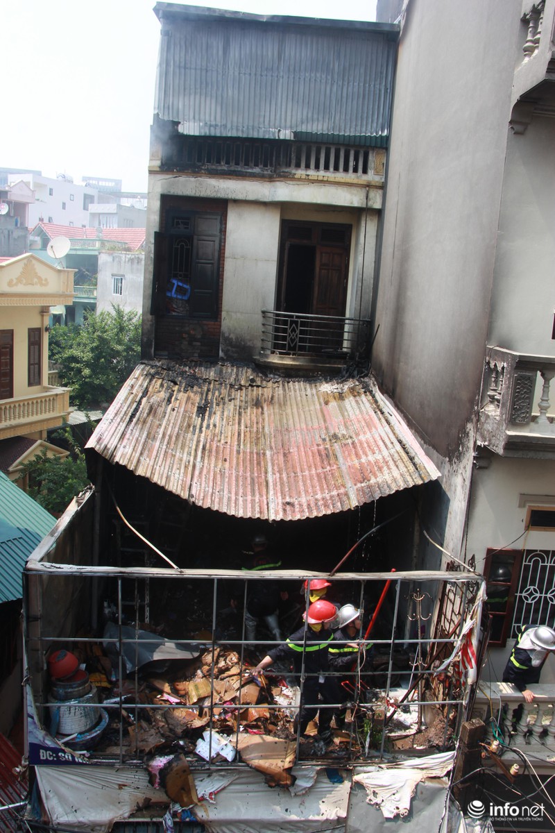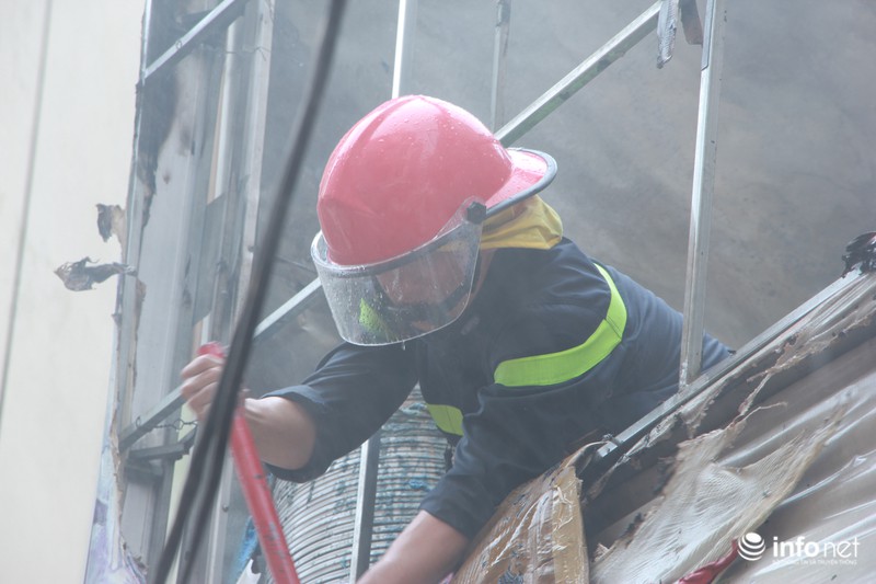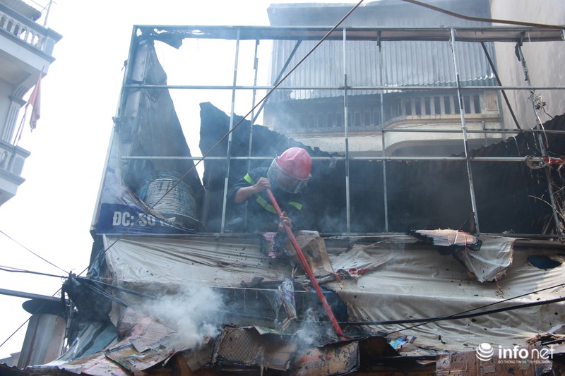 Tại hiện trường, cơ quan chức năng cũng phải tiếp cận lên các ngôi nhà phía đối diện để phun nước dập lửa tại tầng 3 của ngôi nhà xảy ra hỏa hoạn. |