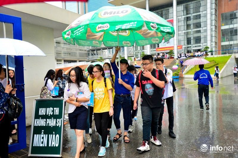 Khoảng 10h20, Hà Nội bất ngờ xuất hiện cơn mưa lớn, đây cũng là lúc các thí sinh chuẩn bị ra khỏi phòng thi. Trong hoàn cảnh đó hình ảnh những chiếc áo xanh tình nguyện đội mưa, che ô đưa sĩ tử từ phòng thi ra cổng trường đã gây ấn tượng mạnh