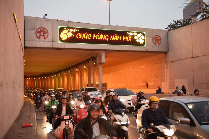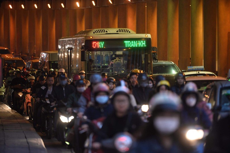 Tại hầm Kim Liên, có những người phải đứng tới 30 phút trong hầm vì không di chuyển được. Đến 18h30, lượng xe vẫn chưa giảm. Cảnh ùn tắc vẫn xuất hiện ở nhiều tuyến phố.