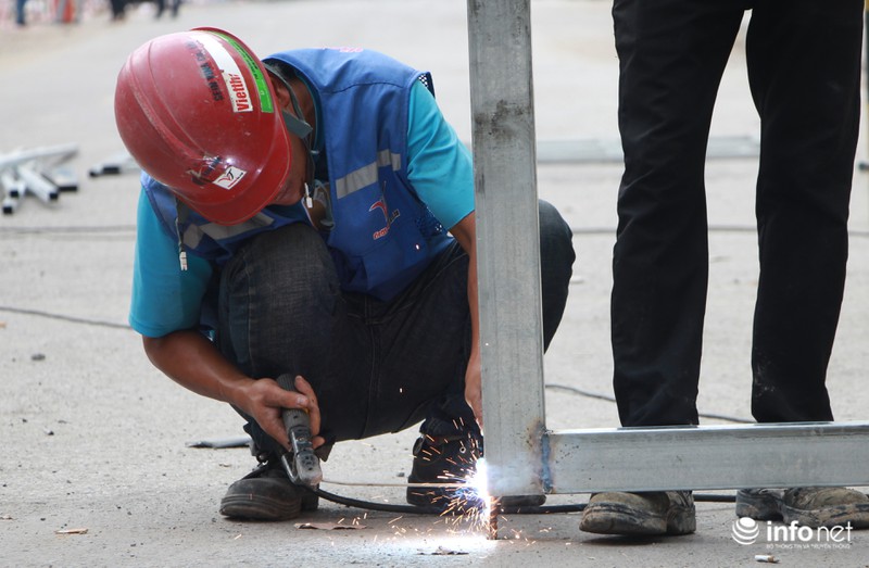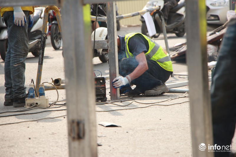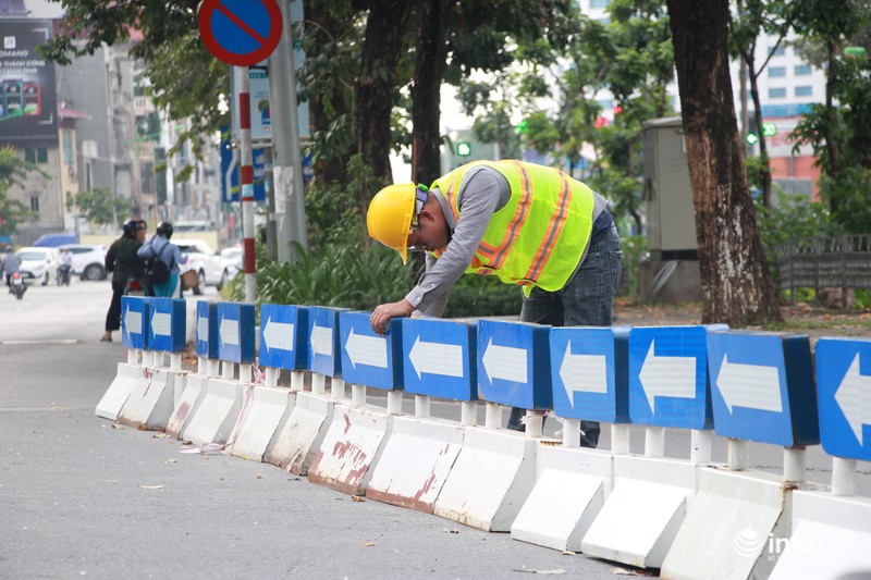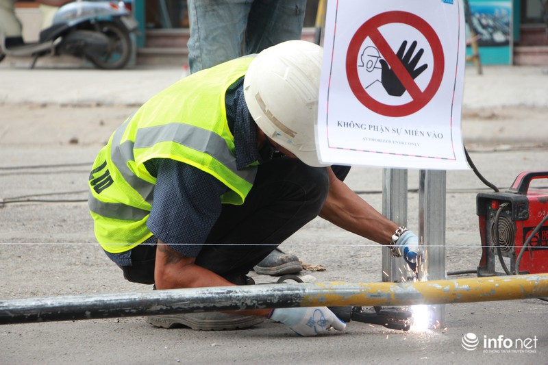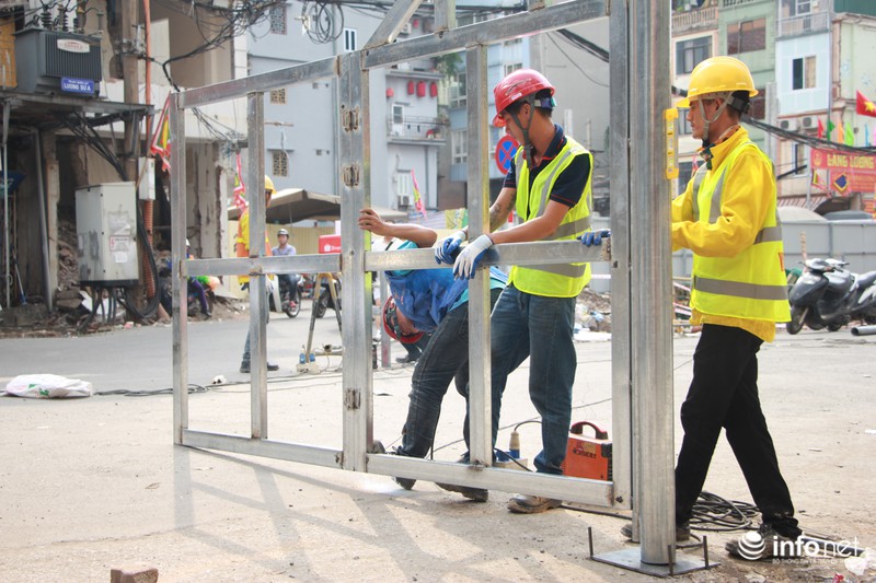 Một số hình ảnh các công nhân đang lập rào chắn tại đường Quốc Tử Giám: