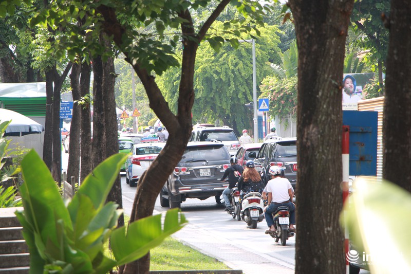 Nhiều phương tiện phải phải đi ngược chiều, lao lên vỉa của đường Kim Mã phía dưới.