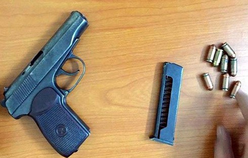Theo Trung tá Đỗ Trọng Tuân, khi cảnh sát khám xe đã phát hiện một túi vải bên trong đựng khẩu súng ngắn kèm 8 viên đạn còn mới.