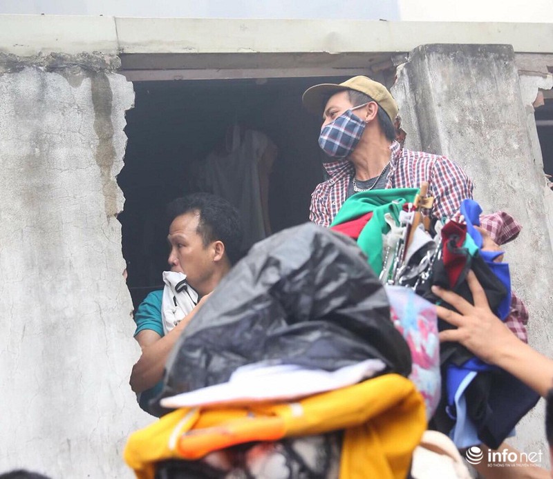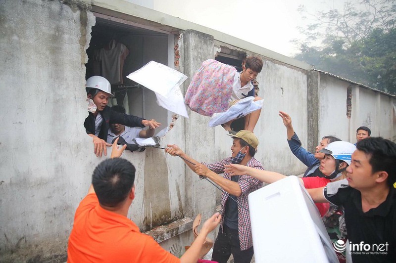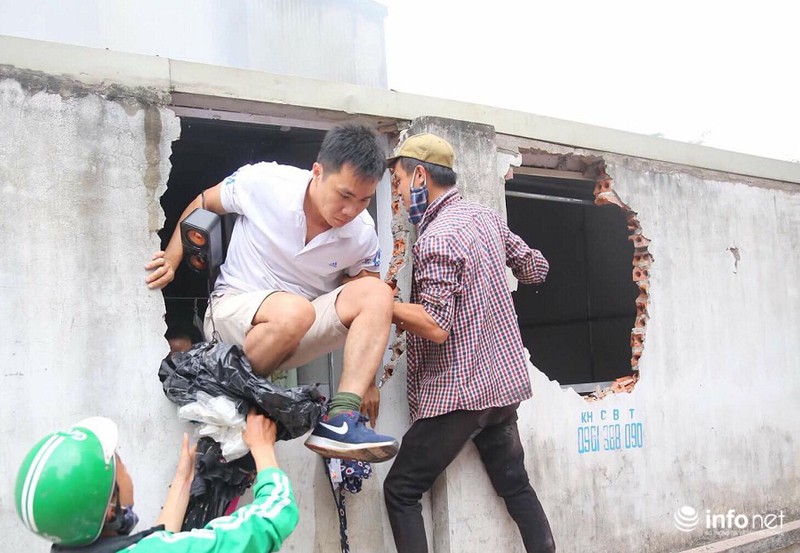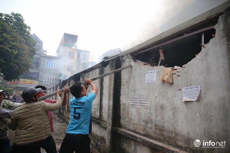 Lúc này, người dân đang phải phá tường sau chợ để những người phía trong chợ thoát ra khỏi đám cháy: