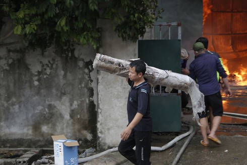 Những người dân xung quanh khẩn trương giúp gia chủ di chuyển đồ đạc. |