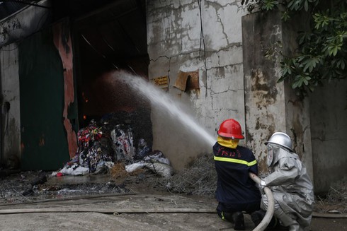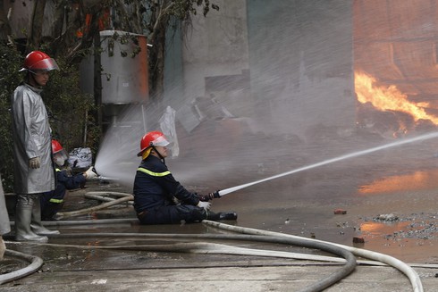 Lực lượng cứu hỏa tích cực phun nước dập lửa... |