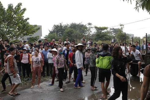 Rất đông người dân đứng ngoài nhìn đám cháy lớn. |
