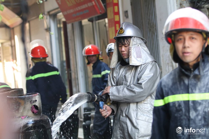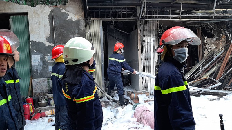Cụ thể, sau tiếng nổ lớn, ngọn lửa nhanh chóng bùng lên bao trùm cả xe tải chở gas lẫn ngôi nhà bên cạnh. Nhận được tin báo, lực lượng chức năng quận Hai Bà Trưng đã có mặt tại hiện trường, phong tỏa và tiến hành chữa cháy.