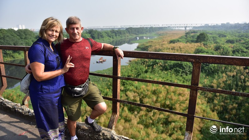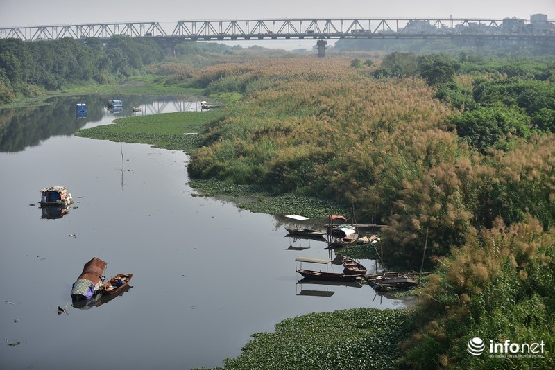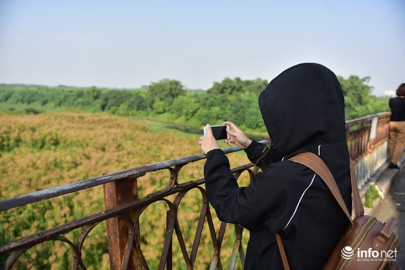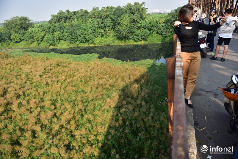 Từ trên cầu nhìn xuống, cảnh sắc vùng ven sông Hồng mang sắc thái đẹp lạ. Trên nền xanh của cây lá, làn nước phẳng lặng êm ru, bãi cỏ lau phấp phới bỗng trở nên quyến rũ, lay động lòng người. Ngồi trên cầu Long Biên, du khách còn có thể lặng lẽ quan sát nhịp sống bình yên, đồng điệu với vẻ đẹp hoa cỏ tự nhiên của những người dân bãi bồi.