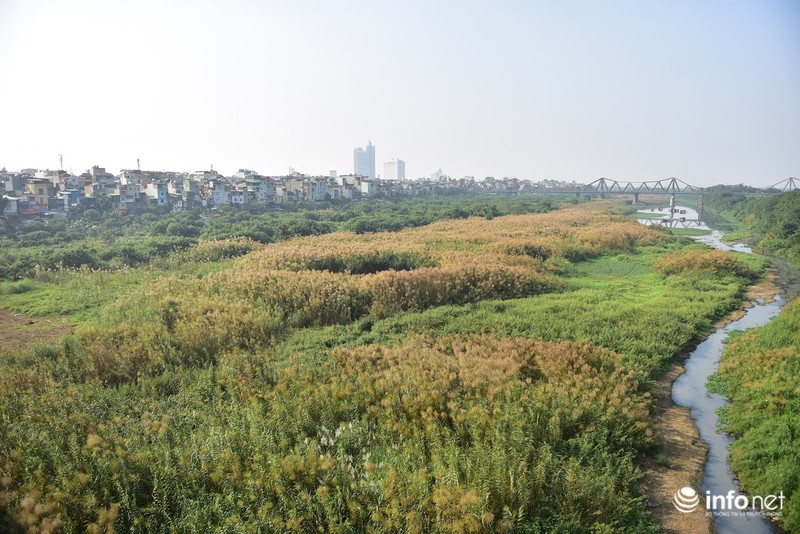 Những bụi lau trải dài ngút tầm mắt, che kín cả mảnh đất phù sa màu mỡ. Và cũng nhờ vậy, hình ảnh 2 cây cầu Long Biên và Chương dương lại trở nên đẹp hơn bao giờ hết. Chỉ đứng ngắm thôi cũng đủ thấy nên thơ rồi!