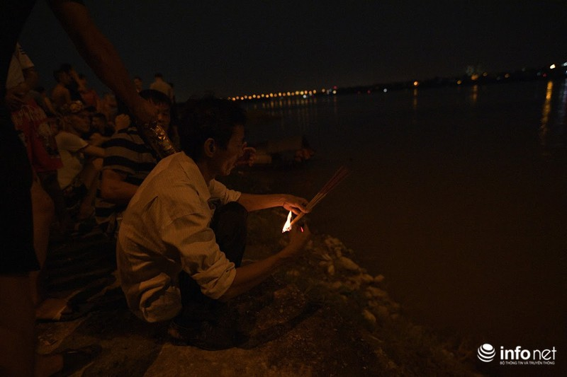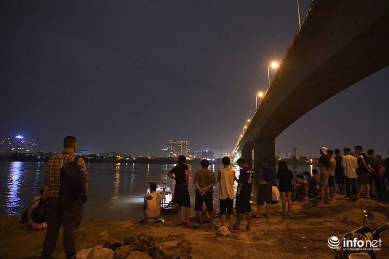 Phía dưới bãi giữa sông Hồng (đoạn gầm cầu Vĩnh Tuy hướng về Long Biên) có rất đông người nhà cũng như bạn bè người thân có mặt. |