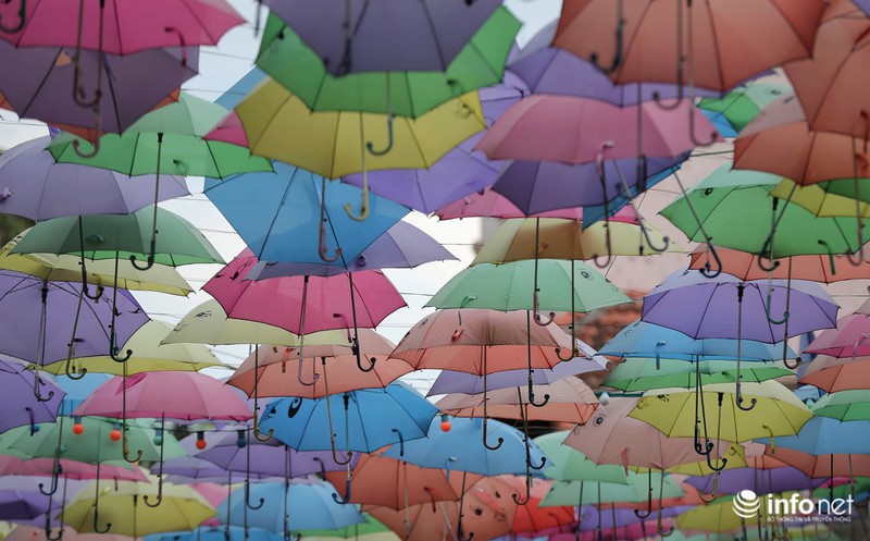 Với đủ các sắc màu bắt mắt từ những chiếc ô, đây quả là một bối cảnh tuyệt đẹp cho những người mê chụp ảnh. |