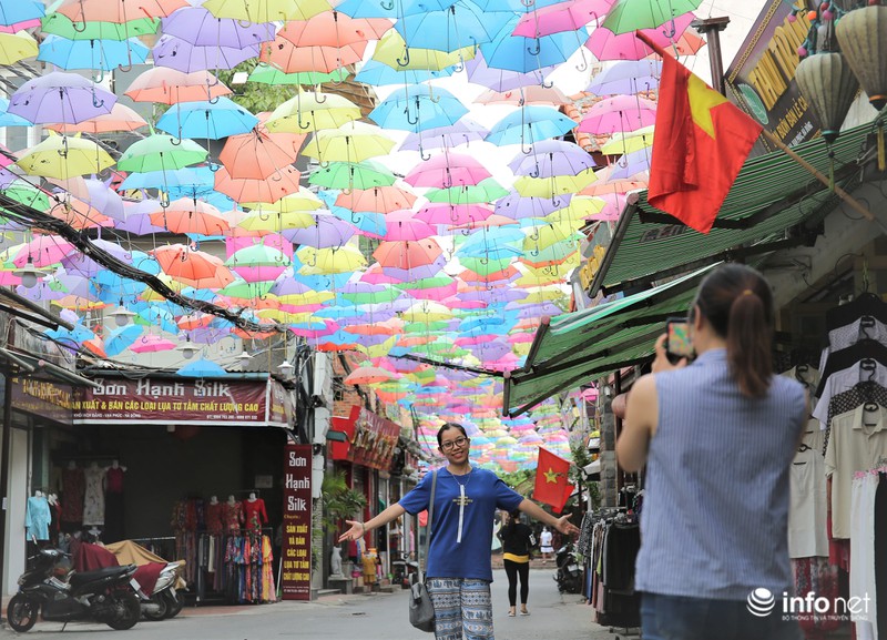 Nhưng ở Việt Nam thì không có nhiều con đường được trang trí bằng ô bắt mắt như ở Vạn Phúc. Do đó, không bỏ lỡ cơ hội này, rất nhiều gia đình, đặc biệt là chị em ưa cái đẹp đã tranh thủ check-in ở con đường ô này. |