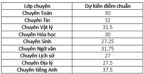 Hà Nội công bố điểm chuẩn vào lớp 10 trường chuyên