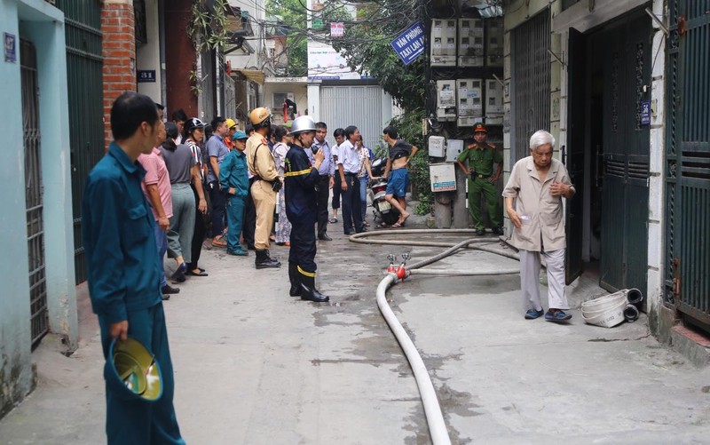 Theo một số người dân ở đây cho biết, đám cháy bắt nguồn từ một cột điện, gần một ngôi nhà 4 tầng trong ngõ.