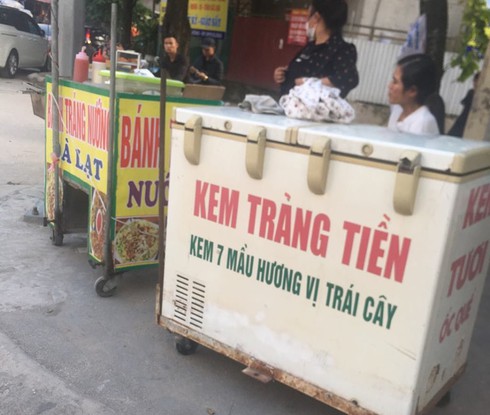 Hàng rong bày bán trước cổng trường tiểu học Lê Lợi, Hà Đông,Hà Nội |
