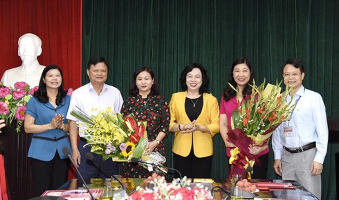 Phó Bí thư Thường trực Thành ủy Ngô Thị Thanh Hằng trao quyết định và chúc mừng 2 nữ lãnh đạo Nguyễn Lan Hương và Nguyễn Thị Tuyến |