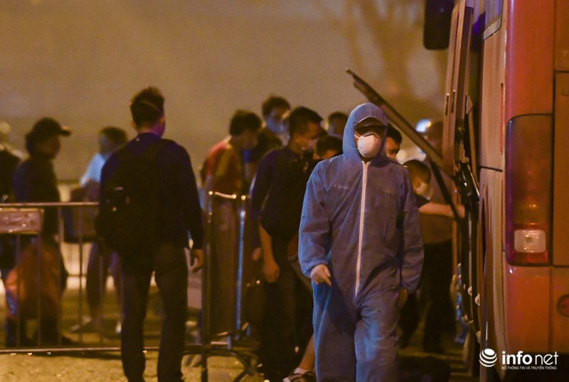 Đêm qua, khu nhà ở học sinh, sinh viên Pháp Vân - Tứ Hiệp (quận Hoàng Mai, Hà Nội) đã tiếp nhận hàng trăm công dân Việt Nam và người nước ngoài từ vùng dịch về Việt Nam.