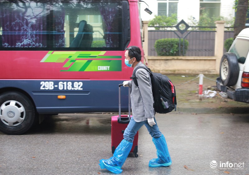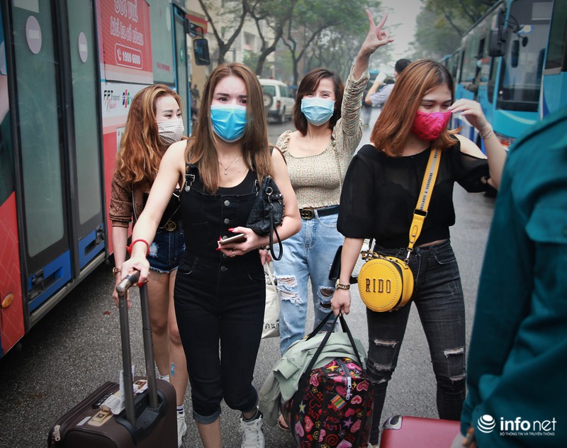 Lực lượng chức năng hỗ trợ các công dân trong nước và nước ngoài trong lúc rời khu cách ly. |