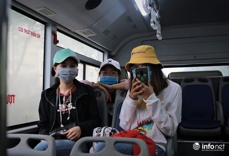 Tâm trạng thoải mái khi ngồitrên xe buýt trước khi trở về địa phương. |