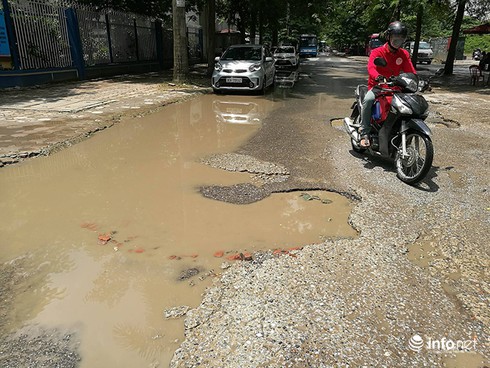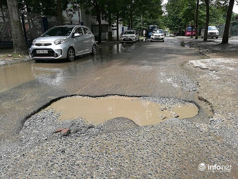 Hố sâu chiếm gần hết mặt đường. |